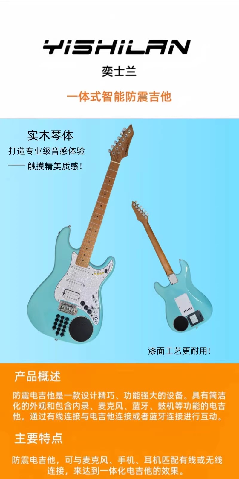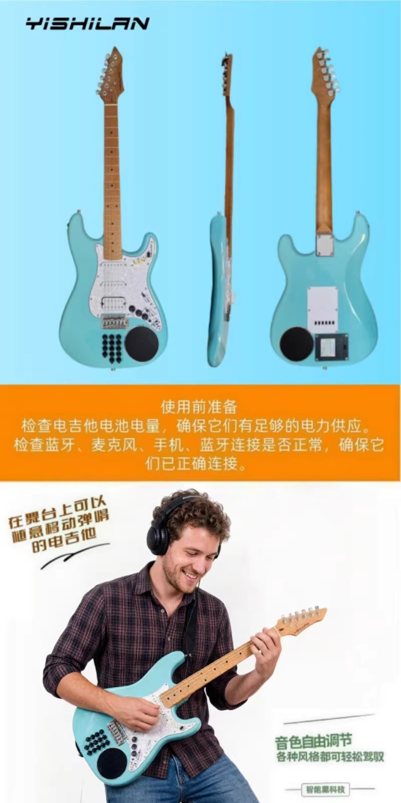 YISHILAN奕士兰YI65EG海沫蓝智能电吉他一体式内置音箱效果器便携