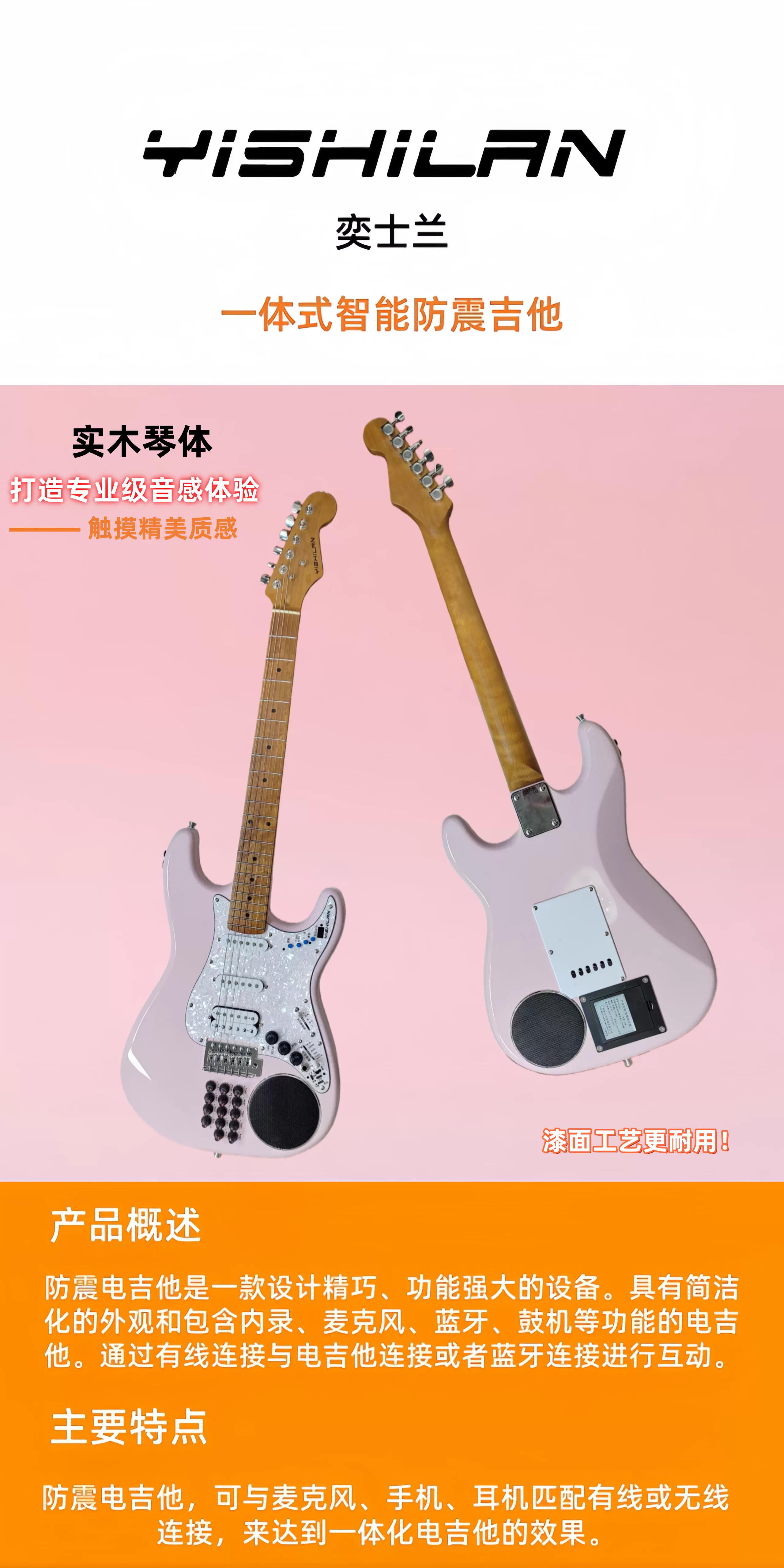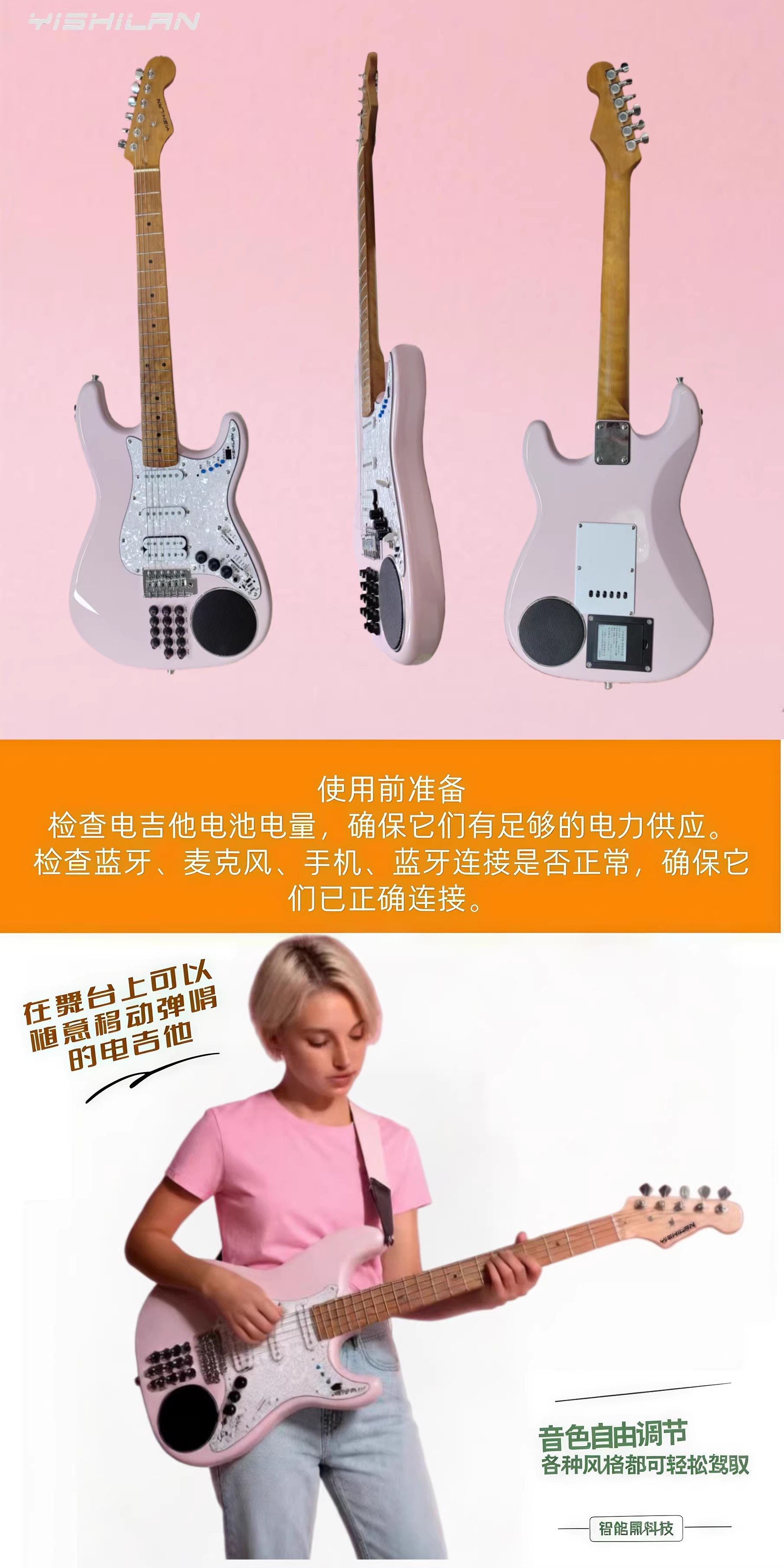 YISHILAN奕士兰YI65EG粉翼智能电吉他一体式内置音箱效果器便携
